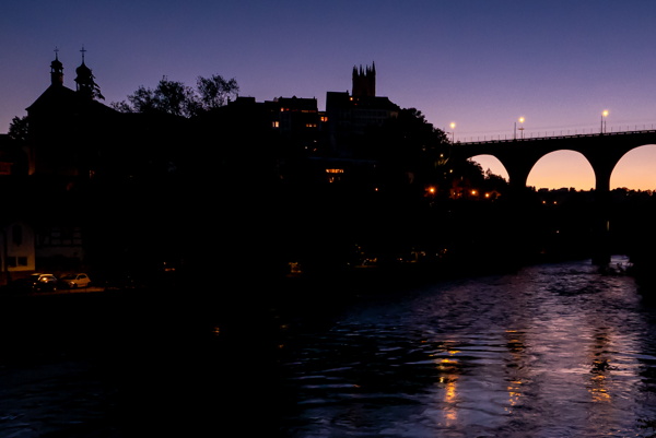 pour prendre cette vue de Fribourg à la nuit tombante. L'appareil